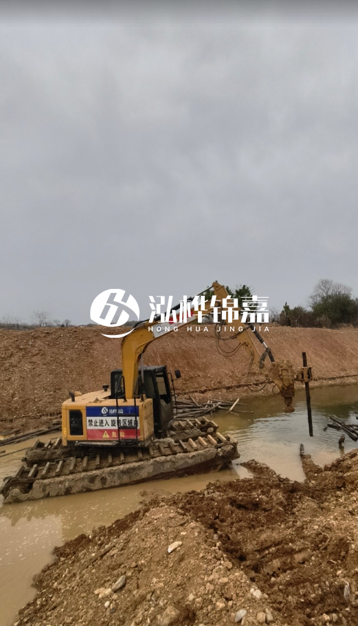 從實際工程案例(如上海徐家宅河道工程)來看,木樁通常采用“密排”形式,并非間隔幾米打一根,而是緊密排列形成連續(xù)擋土墻。具體操作中: